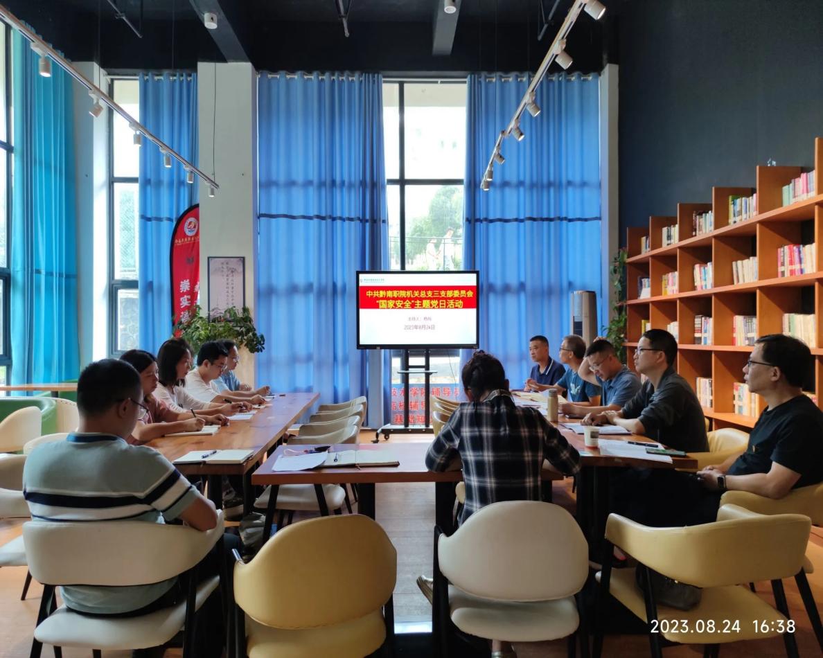 为深入贯彻落实党的二十大精神,全面践行总体国家安全观,积极主动履行维护国家安全的义务,加强国家安全意识,8月24日,机关三支部举办“增强国家安全意识,共同维护国家安全”主题党日活动,本次活动由党支部书记杨均主持,支部全体党员参加。