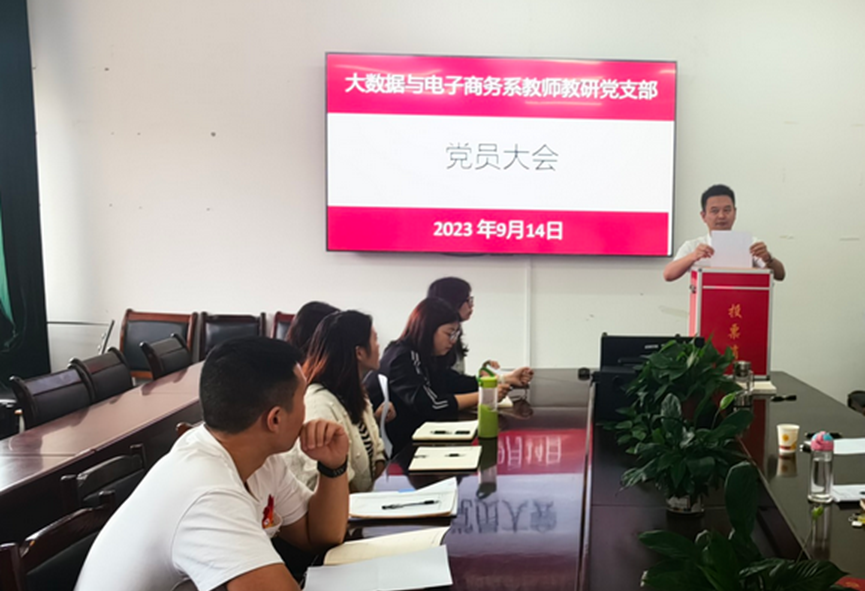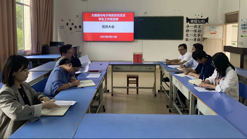 9月14日,大数据与电子商务系党总支在系部会议室召开党员大会进行换届选举,选举产生新一届党总支委员会。会议由党总支书记韦递平主持,系全体党员参加会议。学院党委委员、纪委书记江屹,学院党建办姜克安到会指导。