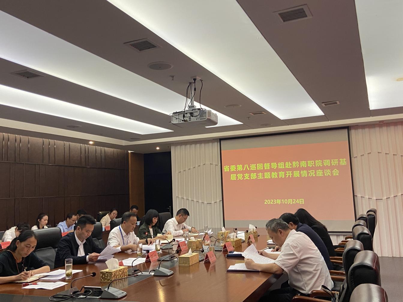 10月24日下午,省委第八督导组赴学院调研基层党支部主题教育开展情况,与基层党支部支部书记进行座谈,并对班子成员开展主题教育个人自学第二轮抽查。