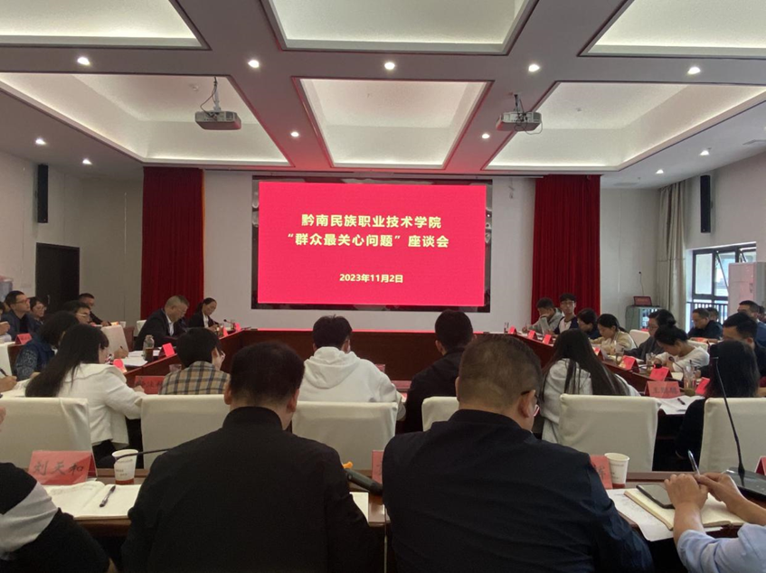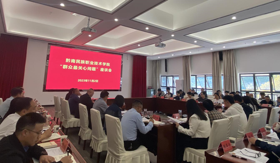 11月2日,黔南职院党委召开“群众最关心问题”座谈会。党委书记罗俊主持会议并讲话,省委第八督导组领导到会指导。