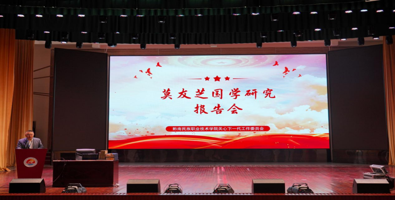 11月7日下午,由黔南州关心下一代委员会主办,我院关心下一代委员会承办的莫友芝国学研究报告会在同向厅举行。国家二级教授、硕士研究生导师、教育部国培计划专家库专家、贵州省委省人民政府命名管理的省管专家、省特殊津贴专家梁光华教授作报告。学院党委副书记、院长刘荣鹏主持,州关工委常务副主任丁匀、州关工委办公室刘红出席并指导,学院思政教师和学生代表参加报告会。