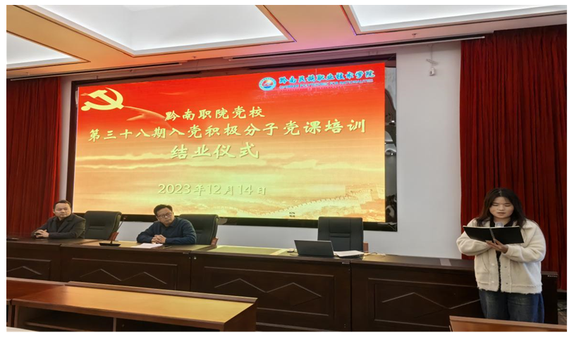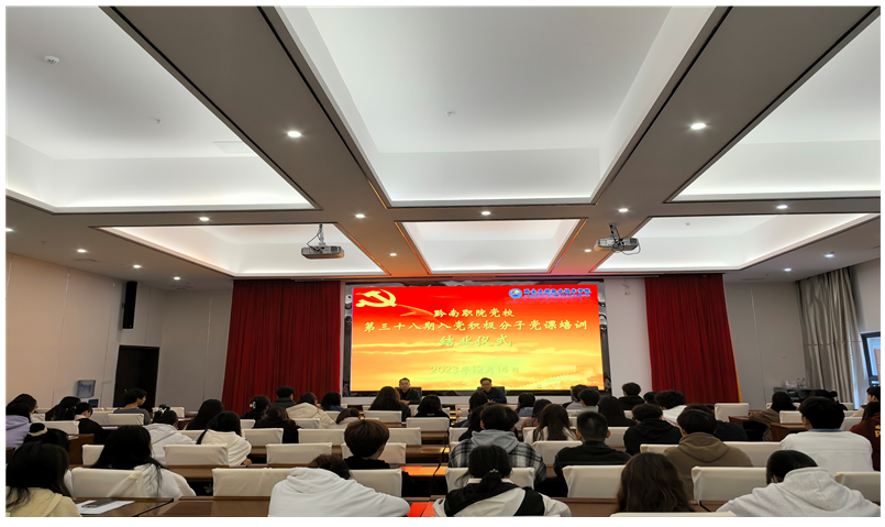 12月14日,学院第38期入党积极分子培训班结业仪式在知行楼道德大讲堂举行。学院党建办负责人姜克安出席并讲话,结业仪式由培训班班主任韦贵香主持,38期入党积极分子培训班学员参加结业仪式。