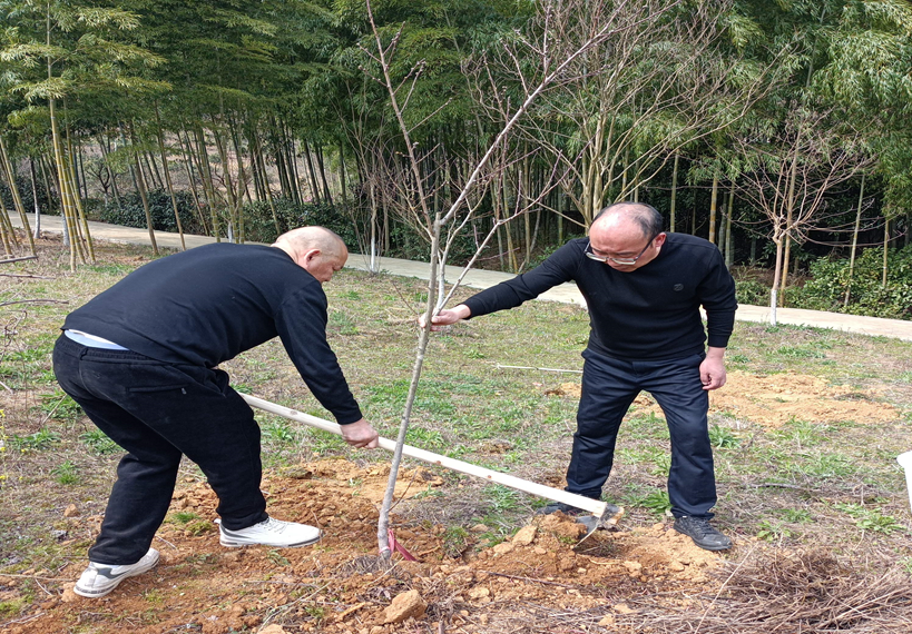 为践行“绿水青山就是金山银山”重要理念,弘扬“黔南职院一家人”主人翁精神,3月12日,院机关党总支中专部党支部组织全体党员在北区桃园开展“植树节 做表率”主题党日活动。