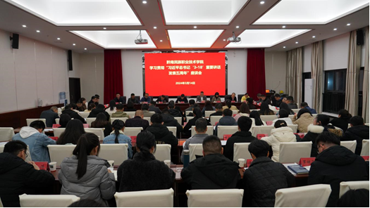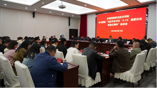 3月14日,学院在知行楼六楼职教联盟多功能厅召开学习贯彻习近平总书记在学校思想政治理论课教师座谈会上重要讲话发表五周年座谈会。党委书记罗俊出席并讲话,党政领导班子成员,各党总支书记、各系主任、各部门主要负责人及全体思政课教师、各系学管主任、各系班主任(辅导员)和专业课教师代表、部分学生代表参加。刘荣鹏院长主持会议。