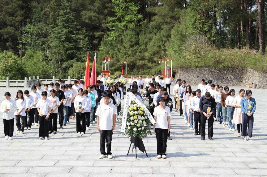 活动中,师生整齐列队,在革命烈士纪念碑前肃立,奏唱国歌,默哀悼念,向革命英烈敬献鲜花,向为中国人民解放事业和共和国建设事业英勇献身的烈士们,致以最为崇高的敬意!