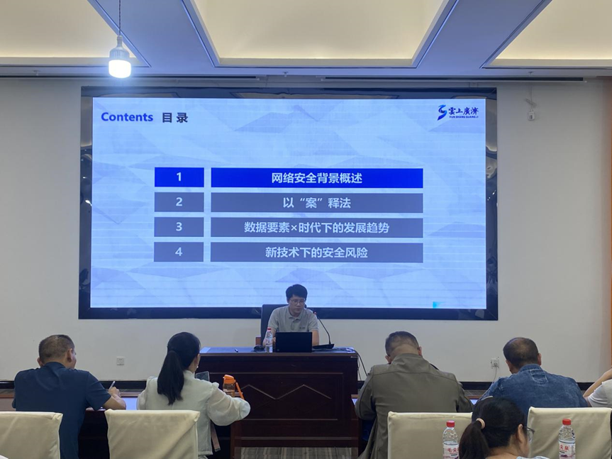 为深入贯彻落实习近平总书记关于全面加强国家安全教育的重要指示批示精神,增强网络安全意识,提升网络安全防范能力,4月16日下午,学院大数据系党总支联合黔南州大数据发展管理局党支部开展“增强网络安全意识,筑牢网络安全防线”主题党日活动。大数据系党总支全体党员、入党积极分子、教师及学生代表,州大数据局党支部党员参加活动,活动特邀云上广济(贵州)信息技术有限公司数据安全培训师董帆进行网络与信息安全知识宣讲。