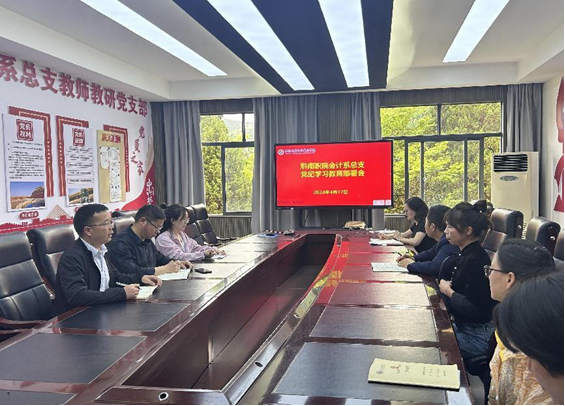 4月17日,会计系党总支召开党纪学习教育动员部署会,会议由党总支副书记刘天和主持。