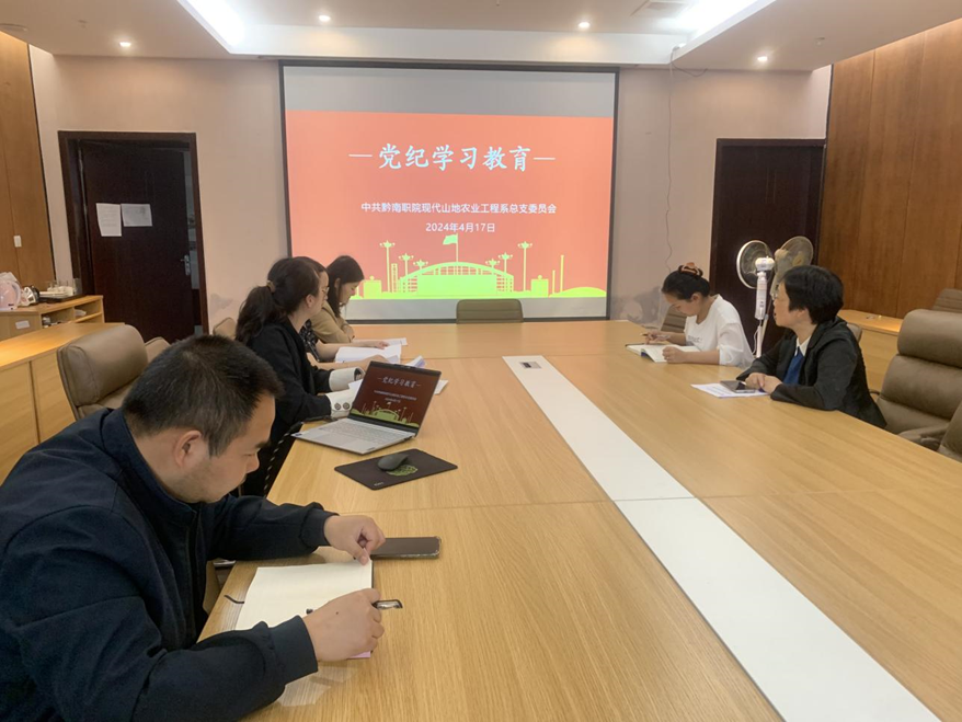 4月17日下午,学院现代山地农业工程系党总支召开党纪学习教育部署会。会上,系党总支副书记侯天荣传达学习习近平总书记关于党纪学习教育的重要讲话和重要指示精神,学习中央、省委、州委相关会议精神。
