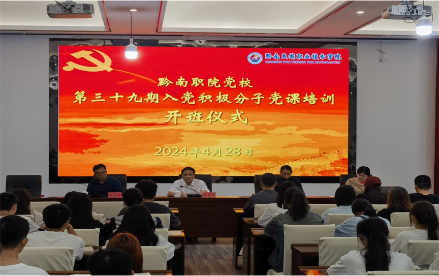 为切实加强入党积极分子政治素质和理论修养, 4月28日,学院业余党校在知行楼道德讲堂举行第39期入党积极分子培训班开班仪式并开始培训,学院党委副书记韦永革、组织部长犹琴、党建办负责人姜克安出席开班仪式,学院120余名入党积极分子参加培训。