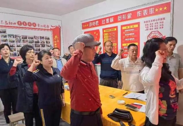与会党员在组织委员张爱梅带领下,重温入党誓词。
