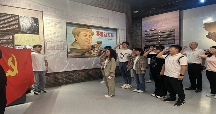 在三线博物馆,在学生工作党支部书记龙娅带领下,新党员庄严宣誓,老党员重温入党誓词。