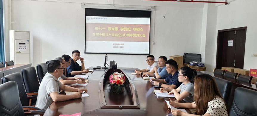 为庆祝中国共产党成立103周年, 7月1日,学院机关党总支教学科研党支部召开“庆七一 感党恩 学党纪 守初心”党员大会,组织集中学习相关制度文件,会议由党支部书记邹林主持。