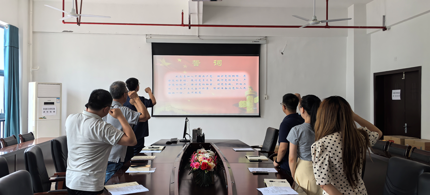 会议最后,全体党员在邹林书记带领下,面对党旗庄严宣誓,重温入党誓词。
