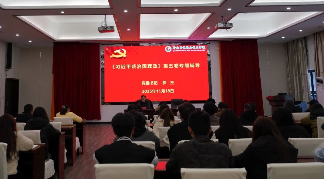 11月18日下午,学院党校第四十二期入党积极分子培训班开班。党委书记罗丕出席开班式并围绕《习近平谈治国理政》第五卷讲授主题党课。开班式由党委委员犹琴主持,全体党校第四十二期入党积极分子参加。