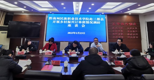 在三都县委会议室,副书记韦永革、副院长段班权同县委组织部部长李自胜、副县长李林龙、政协副主席何娟和乡村振兴局、人社局、党建办等有关部门领导就乡村振兴基层治理人才培养需求进行了深入交流,双方围绕深化“校县”合作,推进乡村振兴人才培养培训达成了进一步推进共识,着力为地方经济社会发展提供人才支撑。