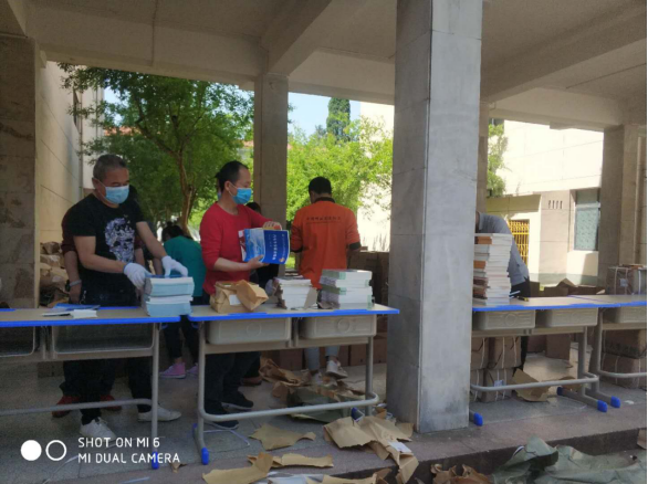 因新冠肺炎疫情影响,学生不能按时返校,为配合老师网络授课,保证学生及时领到教材,教务处与教材合作方贵阳新知发展公司协商,以邮政快递方式把教材送到学生手中。从4月22至4月25日共为189个班,计7527位同学快递教材,提高了网络授课的效果。