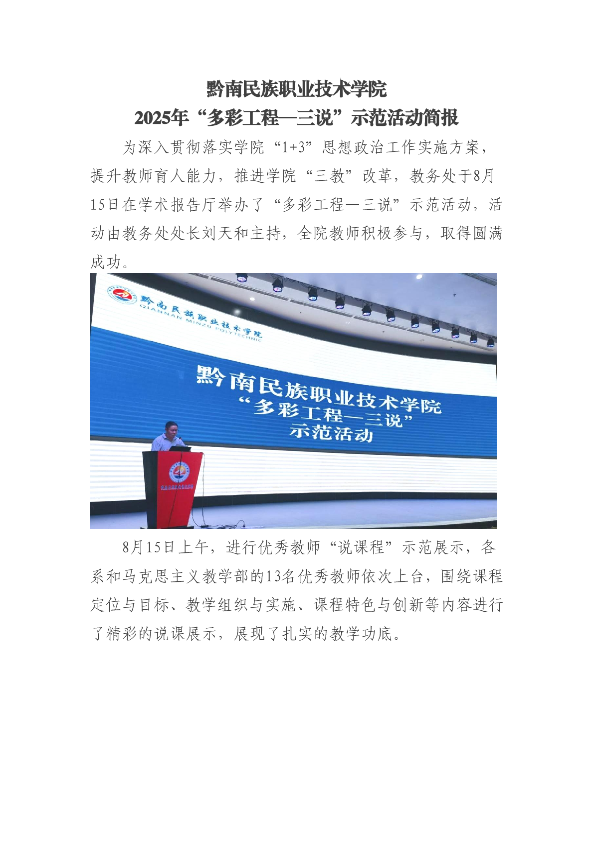 黔南民族职业技术学院2025年“多彩工程—三说”示范活动简报