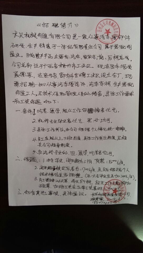 苍梧县长兴机械制造有限公司都匀分公司(学院旁)招聘简章