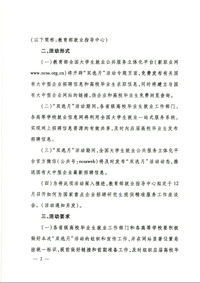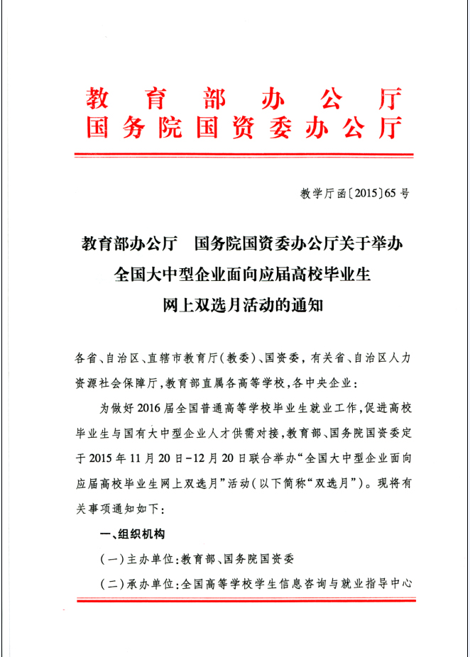 关于举办全国大中型企业面向应届高校毕业生网上双选月活动的通知