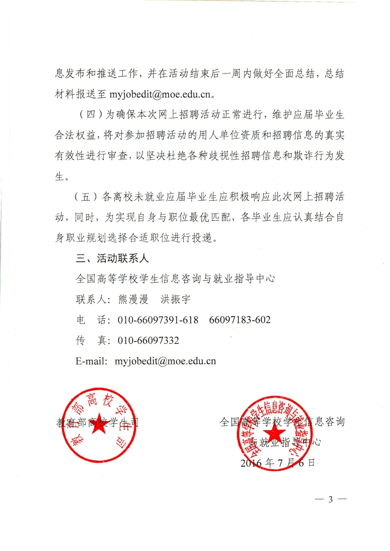 关于联系和组织2016届离校未就业毕业生参加网上招聘活动的通知