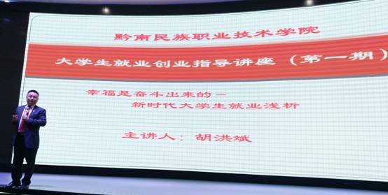 第一期讲座于2018年4月19日下午在知行楼学术报告厅举行。中国平安人寿保险营销总经理胡洪斌先生以《幸福是奋斗出来的-新时代大学生就业浅析》为题,分享了个人成长经历,并例举生动的事例,向同学们作了“要幸福,只有奋斗”的精彩讲座。