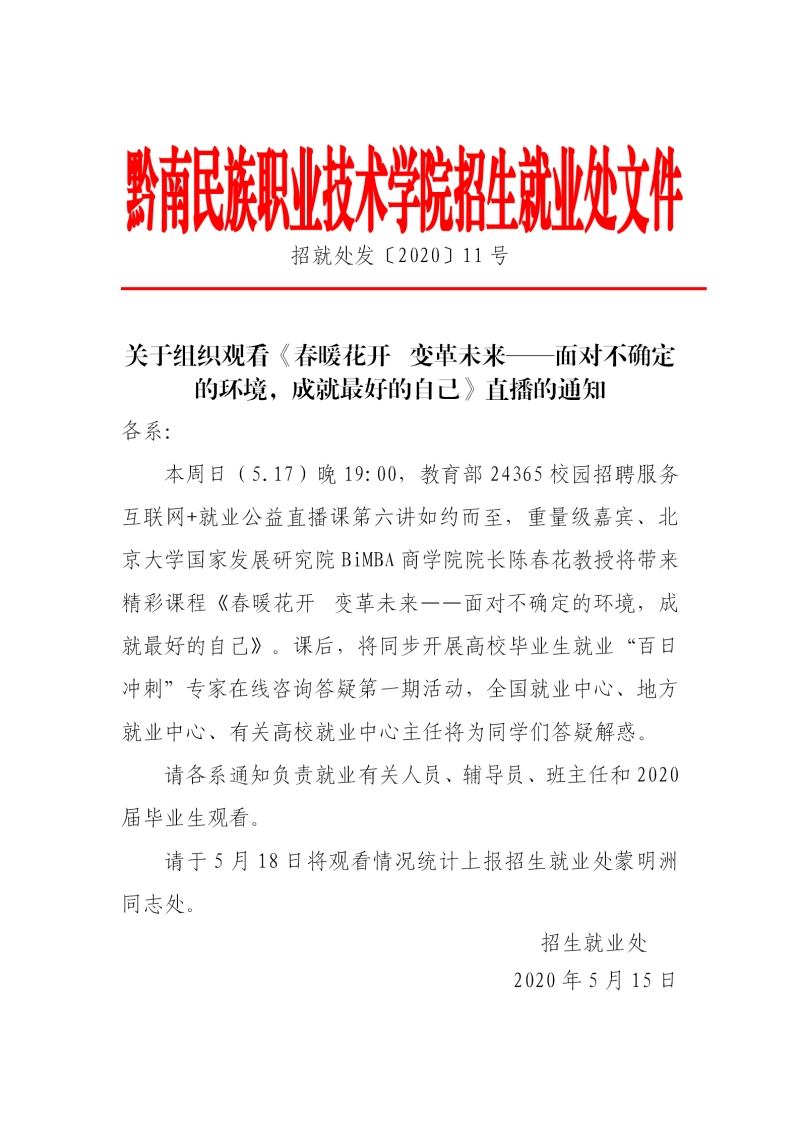 关于组织观看《春暖花开 变革未来——面对不确定的环境,成就最好的自己》直播的通知