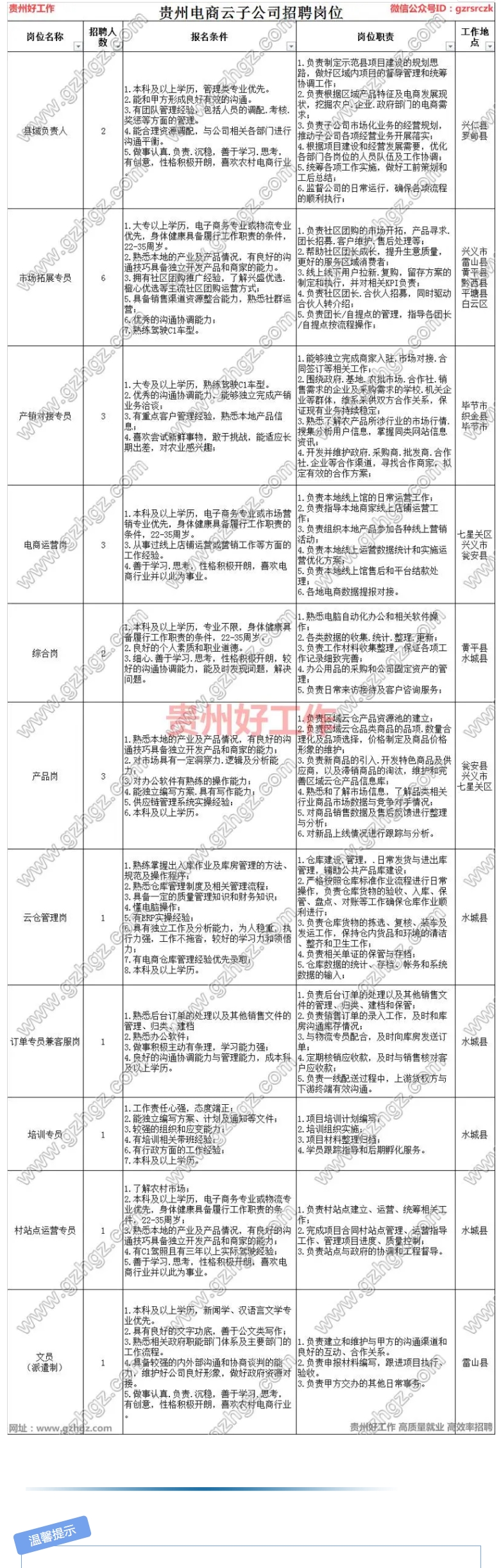 电商云子公司招聘信息(详见表格)