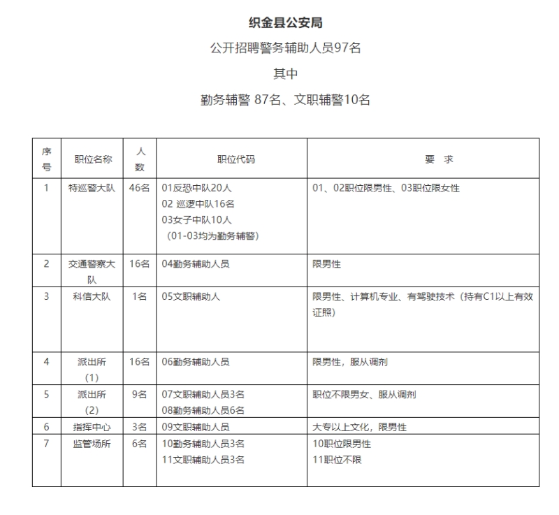 2、报考01-03职位、05-11职位报名地点:特巡警大队警务站(县人民医院往二中方向前进50米原地税局)