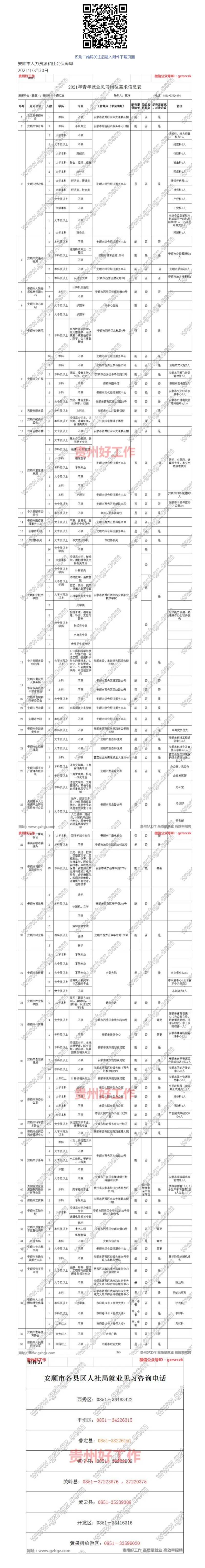 【见习】安顺市2021年度市本级青年就业见习招募349人