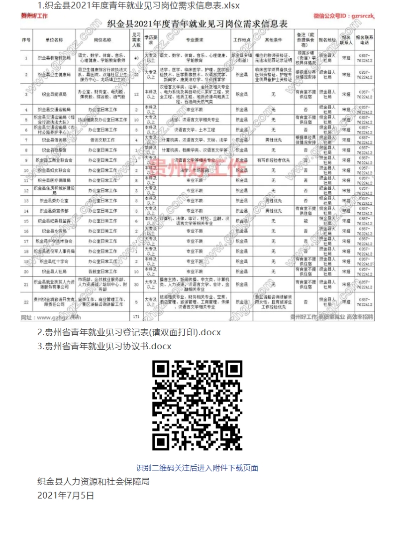 毕节 | 织金县2021年度青年就业见习工作招募171人