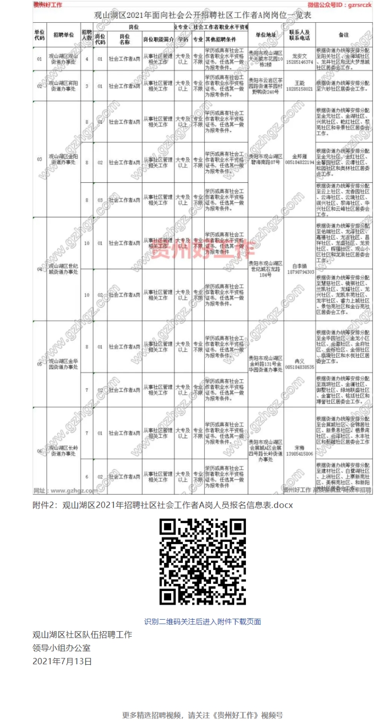 贵阳市观山湖区2021年招聘79名社区工作者A岗人员