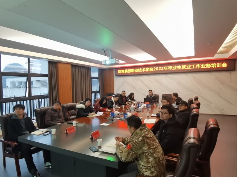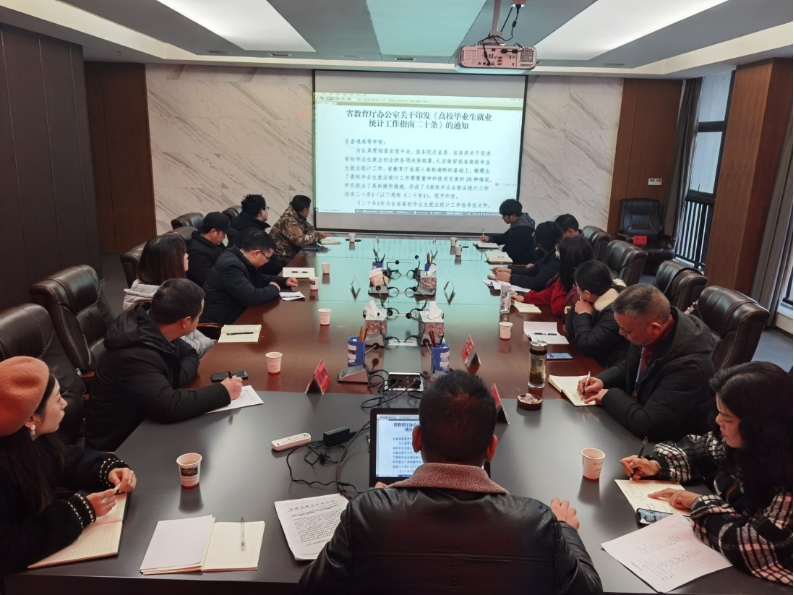 为认真贯彻落实党中央、国务院及省委、省政府关于促进高校毕业生就业创业的决策部署和教育部、省教育厅关于做好2022届毕业生就业创业工作有关文件精神,扎实做好我院2022 届毕业生就业创业工作,进一步规范毕业生就业创业工作资料收集整理和就业信息统计工作,努力提升毕业生就业创业工作信息化办公水平,实现毕业生就业创业工作高效、规范运行, 2022 年 1 月 6 日上午招生就业处副处长胡江在知行楼六楼第一会议室对招生就业处就业工作人员、各系学管主任、就业工作人员组织开展毕业生就业创业工作业务培训。