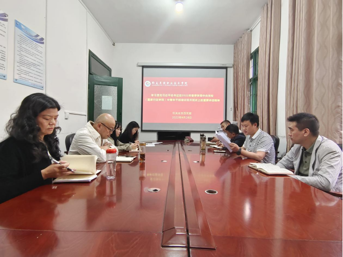 4月28日,招生就业处全体人员在部门会议室集中学习贯彻习近平总书记在中央党校(国家行政学院)中青年干部培训班开班式上的重要讲话精神。