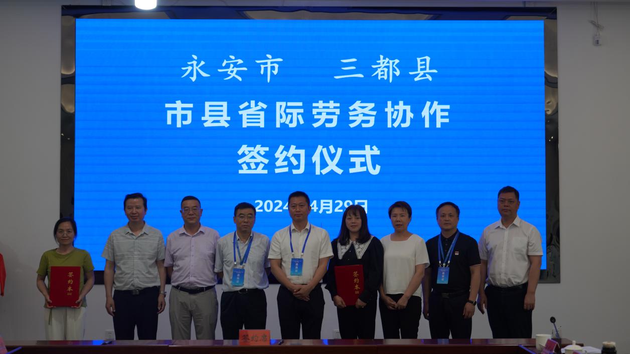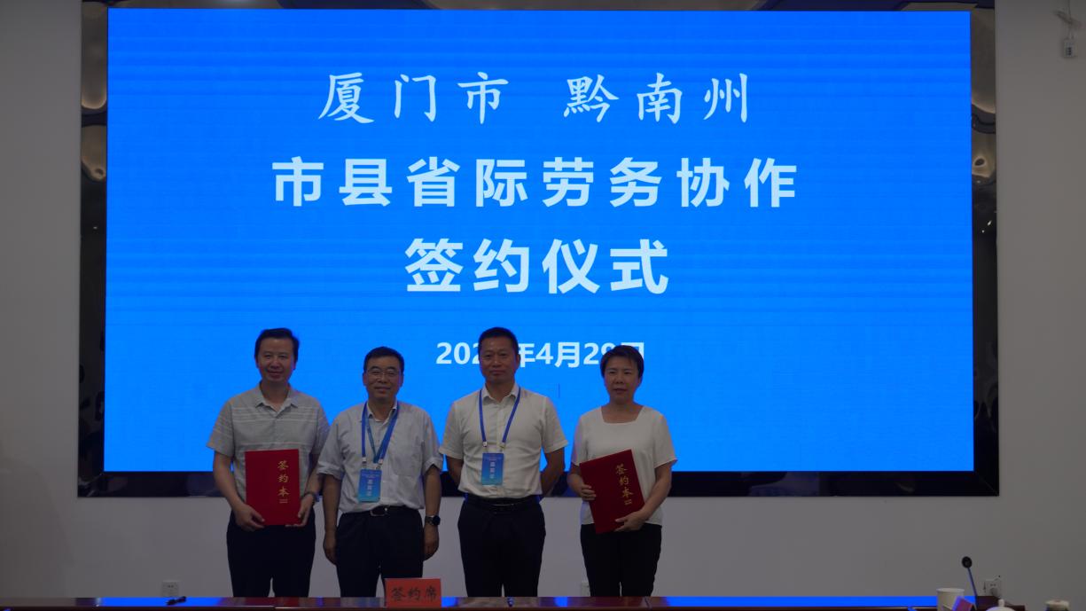 会上,黔南州与厦门市、惠水县与罗源县、瓮安县与惠安县、三都县与永安市签订了市县省际劳务协作协议,举行了福建省驻黔南州省际劳务协作工作站揭牌仪式。