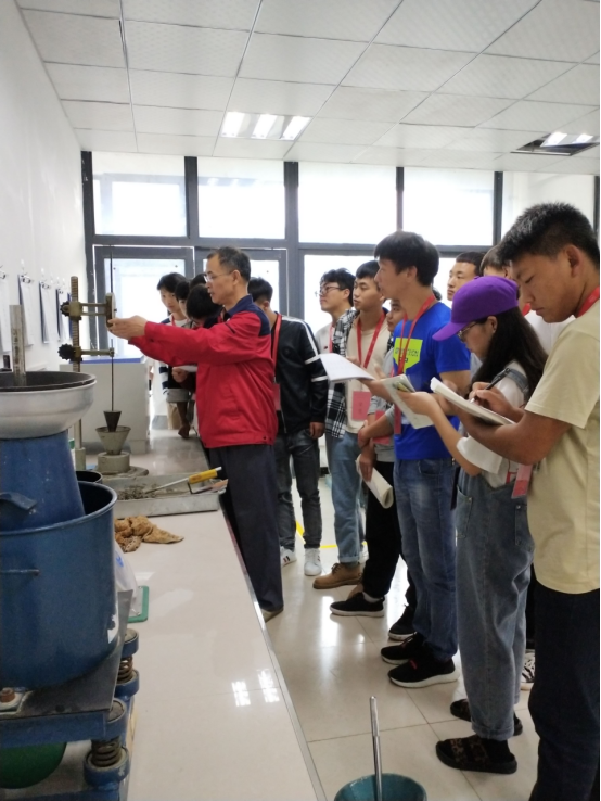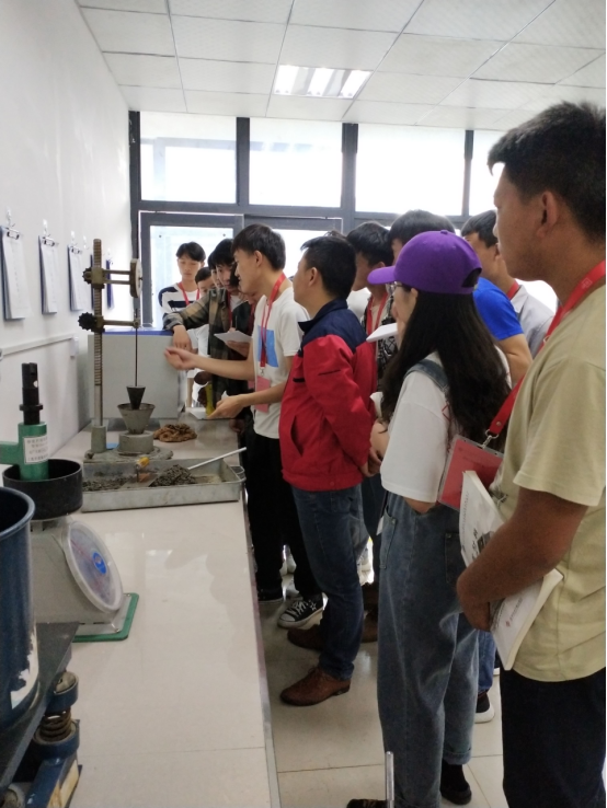 实践学习中,学生按照班级分组,在检测中心阮积武主任的指导下,到砂浆、混凝土试配室进行观摩学习。阮积武主任亲自为学生进行演示试验,细致地讲解试验步骤和注意事项,认真解答学生提出的问题。学生还在试验室汤元相老师的指导下进行了实践操作,每个班级均完成了混凝土、砂浆2个大项4个小项的试验项目。