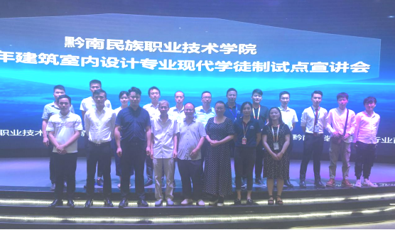 2019年6月20日下午,建筑工程与设计系按照现代学徒制工作要求,体现“学生→学徒→准员工→员工”四位一体的人才培养总体思路,以企业用人需求与岗位资格标准为导向,以学生技能培养为核心,以学校、企业的深度参与和教师、师傅的细致指导为支撑,与黔南州装饰建材行业商会及部分优秀企业合作,在我院知行楼学术报告厅举办2019年建筑室内设计专业现代学徒制试点宣讲会。