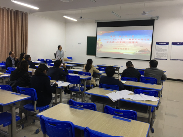 2019年10月31日下午,建筑工程与设计系总支副书记游蓉同志为我系全体党员上党课。 党课内容为“不忘初心,牢记使命”主题教育专题党课-学先进,找差距,抓落实。党课分享了不忘初心,扎实工作,廉洁奉公—廖俊波、一位老英雄的初心本色—张富清、太行山上新愚公—李保国、为“中国天眼”而生—南仁东、绝壁凿“天渠”壮志凌山河—黄大发、特殊军礼,立起无言丰碑—杜富国等同志的先进事迹,对照这些先进人物的事迹,从自身找差距,分享了学习的体会。同时也警醒其他党员同志学习他们不忘初心,扎实工作,无私奉献的精神。