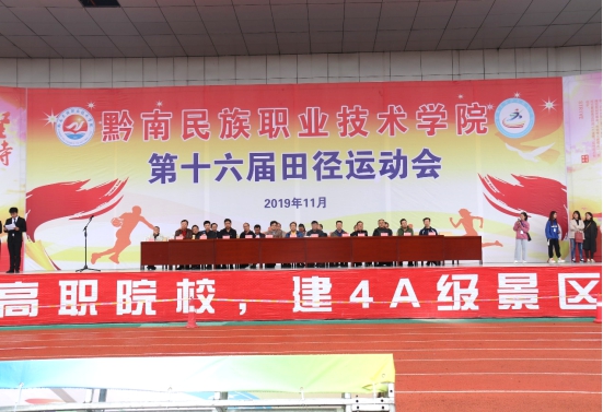 黔南民族职业技术学院“第十六届田径运动会”于2019年11月6日至11月8日在南区足球场隆重举行。11月6日举行开幕式,罗俊书记、饶辉院长、各系总支书记及主任、老师、同学们参加了本次校运会开幕式;11月8日运动会闭幕式,罗俊书记、饶辉院长、各系总支书记、全体工作人员、运动员代表和各系的代表班级参加闭幕。