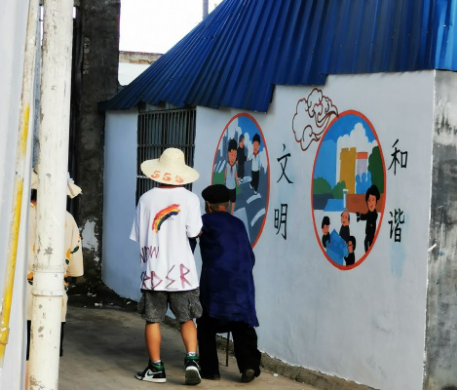 “原来乡村也可以这么美!”路过的村民不禁感慨,并向志愿者们竖起了大拇指。服务队所表现出来的不怕吃苦、敢于吃苦的优良品格,村民们看在眼里,疼在心里,时常善意的询问志愿者们需不需要喝水,服务队婉拒的同时,也不忘向村民表达谢意。不时有孩子路过,定睛注目,服务队看出了他们的小疑惑,便耐心地向他们讲解所绘的内容、含义、和宣传传统文化正确的人生观、价值观。