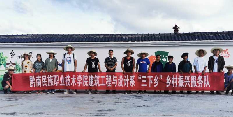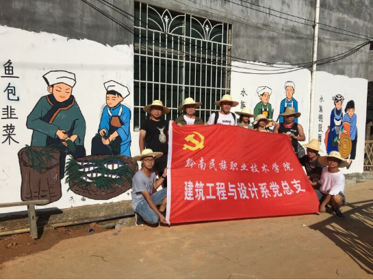 2020年8月12日—8月15日,黔南民族职业技术学院建筑工程与设计系总支暑期“三下乡”乡村振兴画笔服务队进驻到学院帮扶点三都县中和镇新阳村开展以“人居环境整治、民族文化进村”为主题的社会实践活动。三都县作为全国唯一水族自治县,这里民族文化底蕴深厚,民族风情独特而浓郁,队员们在这里为乡村开展以“水族文化”为主的墙体彩绘工作。队员们用烈日与汗水作原料,用认真、严谨的态度作调和剂,将其转化为一幅幅精美画作。