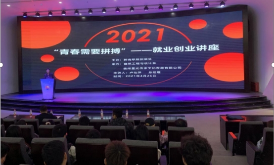 知行合一苦练内功,提升技能筑梦启航。为落实党中央关于做好“六稳”、“六保”工作指示,做好2022届毕业生就业启动工作,建筑系邀请贵州星光传承文化发展有限公司卢仕萍总经理于2021年4月26日到校作就业创业指导专题讲座。建筑系党总支杨明凯书记、院招生就业处蒙明洲主任、建筑系班主任及300余名2022届学生聆听了本次讲座。