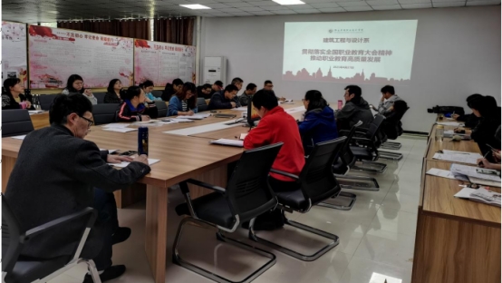 为认真贯彻4月12日至13日全国职业教育大会精神和省教育厅组织的全省“贯彻落实全国职教大会精神 推动职业教育高质量发展”培训会会议精神,4月27日下午,建筑系组织全体教职工召开专题学习会议。
