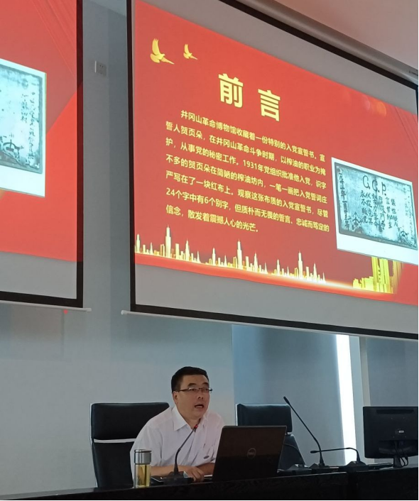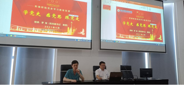 2021年6月8日下午在学院圆形报告厅院党委书记罗俊同志为建筑系教师党员及入党积极分子做“学党史 感党恩 跟党走”专题党课。讲座由建筑系党总支书记杨明凯同志主持。