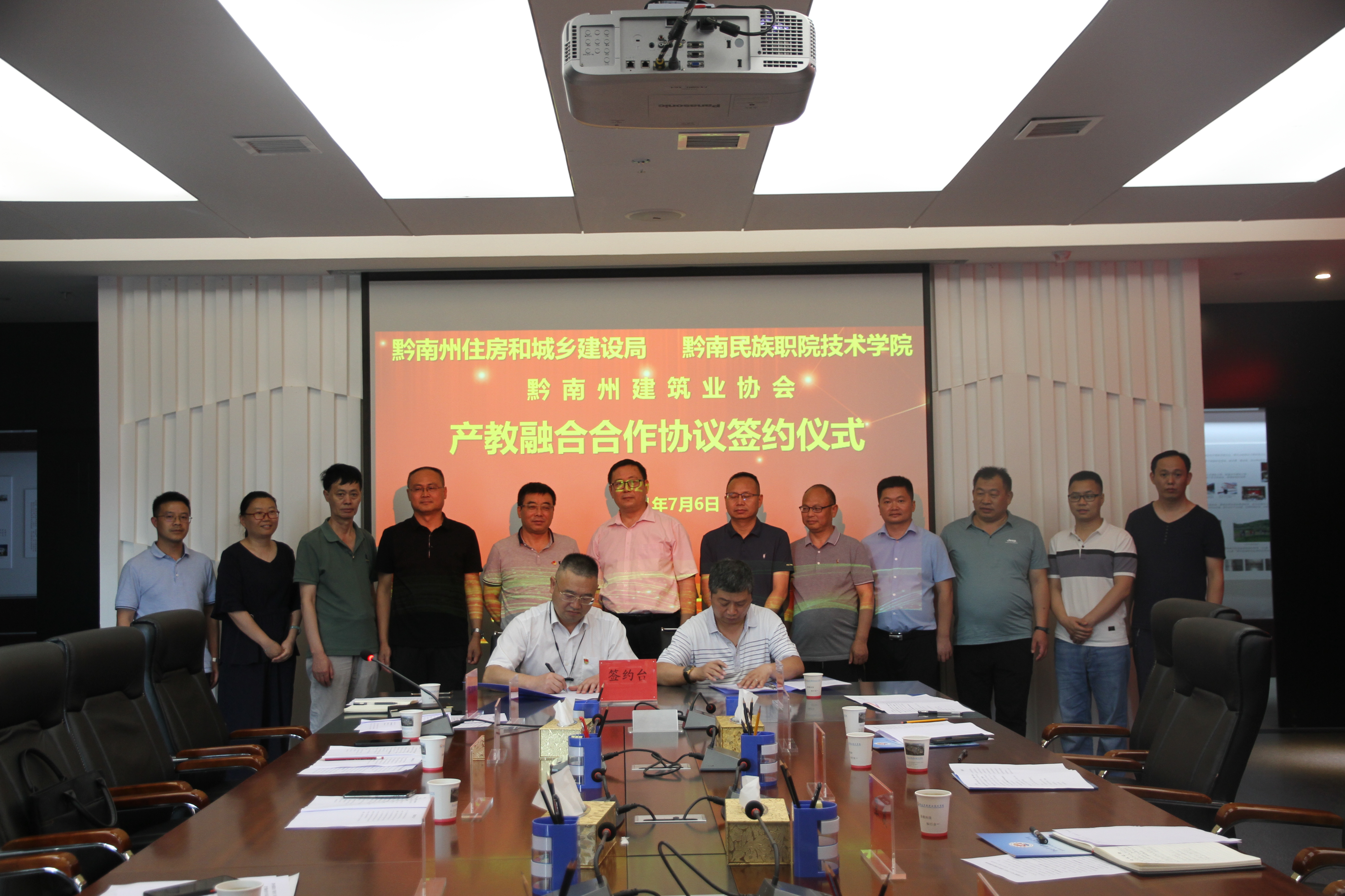 为巩固拓展脱贫攻坚成果,实现同乡村振兴有效衔接,加快建筑产业人才培养,满足乡村振兴和新型城镇化人才需求,探索“政校行企”协同育人途径,7月7日下午,黔南州住房和城乡建设局、黔南民族职院技术学院、黔南州建筑业协会、黔南州建筑设计研究院、黔南州建设工程质量检测中心等单位主要领导共聚黔南民族职业技术学院,出席黔南州建筑行业“政校行企”协同育人座谈会暨产教融合合作协议签约仪式。