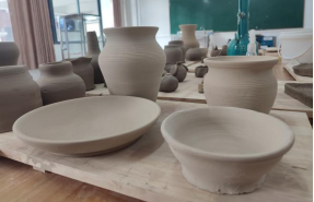 在实践课程中,郭老师带领学生认识泥料,教授拉胚内容。学生们认真专注,用心感受手指与陶泥的交汇,一个个精彩纷呈的作品呈现在眼前。