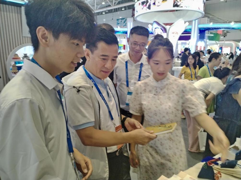 展会期间,贵州电视台王先宁台长、州委常委、秘书长、宣传部长文永生等领导莅临展位指导工作。文永生部长对黔南职院学生自创品牌,打造民族文化做法非常值得肯定、支持与鼓励。
