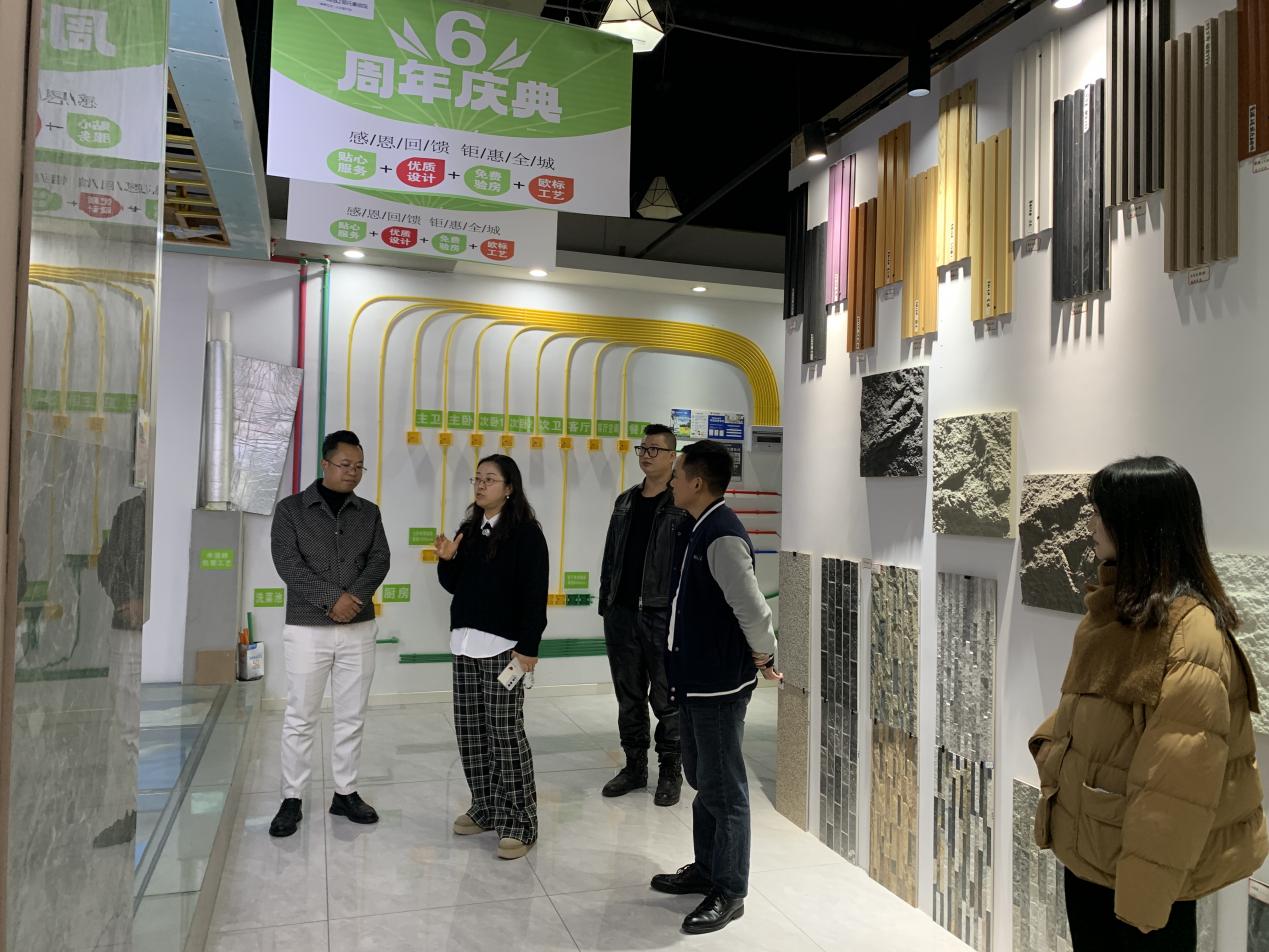 调研团队一行首先参观了贵州新元素装饰设计有限公司建筑材料、施工工艺展区、新媒体营销工作室,了解公司基本情况。