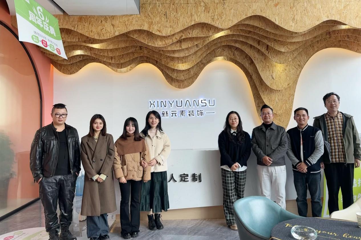 2023年11月27日,在黔南民族职业技术学院建筑工程与设计系游蓉主任带领下,设计教研室主任姜卫军、专业负责人彭成、骨干教师裘子龙以及就业指导教师张红梅一行前往贵州新元素装饰设计有限公司调研。