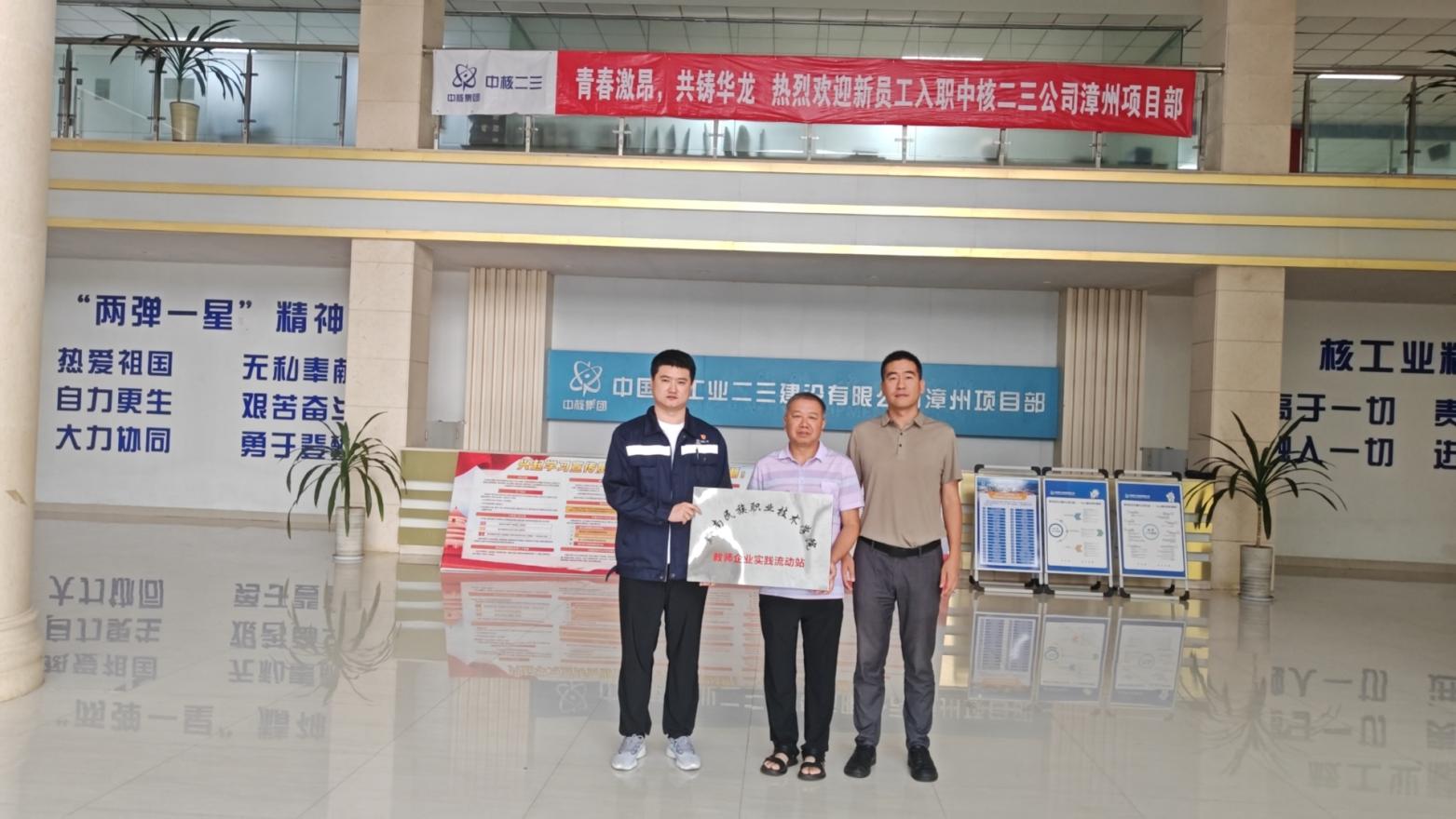 为推动中高协同发展示范校建设项目,加强双师型教师队伍建设。2024年8月10——12日,建筑工程与设计系党总支书记潘奇、招生就业处副处长胡江携建筑工程与设计系副主任潘德猛、专业教师和班主任伍达富、王雲等一行5人赴江西南昌欧菲光有限公司、中国核工业二三建设有限公司进行校企合作交流并举行“教师企业实践流动站”揭牌仪式。