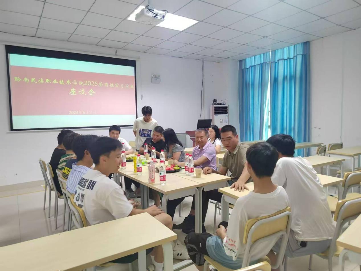授牌后仪式结束后,潘奇书记一行与22级实习生代表进行了座谈。会上,与会学生代表积极发言,谈了各自面对工作中的困惑、得到的收获等。公司代表对我院学生的表现给予了充分肯定,感谢学院培养的优秀人才。潘奇书记向学生们表达了学院领导和老师们的关心,肯定了大家在工作中的表现,并对22级实习生提出了要求,希望大家在岗位实习中努力提高专业技能,遇到困难时,要多与老师沟通,学院将为实习学生提供及时指导和帮助。